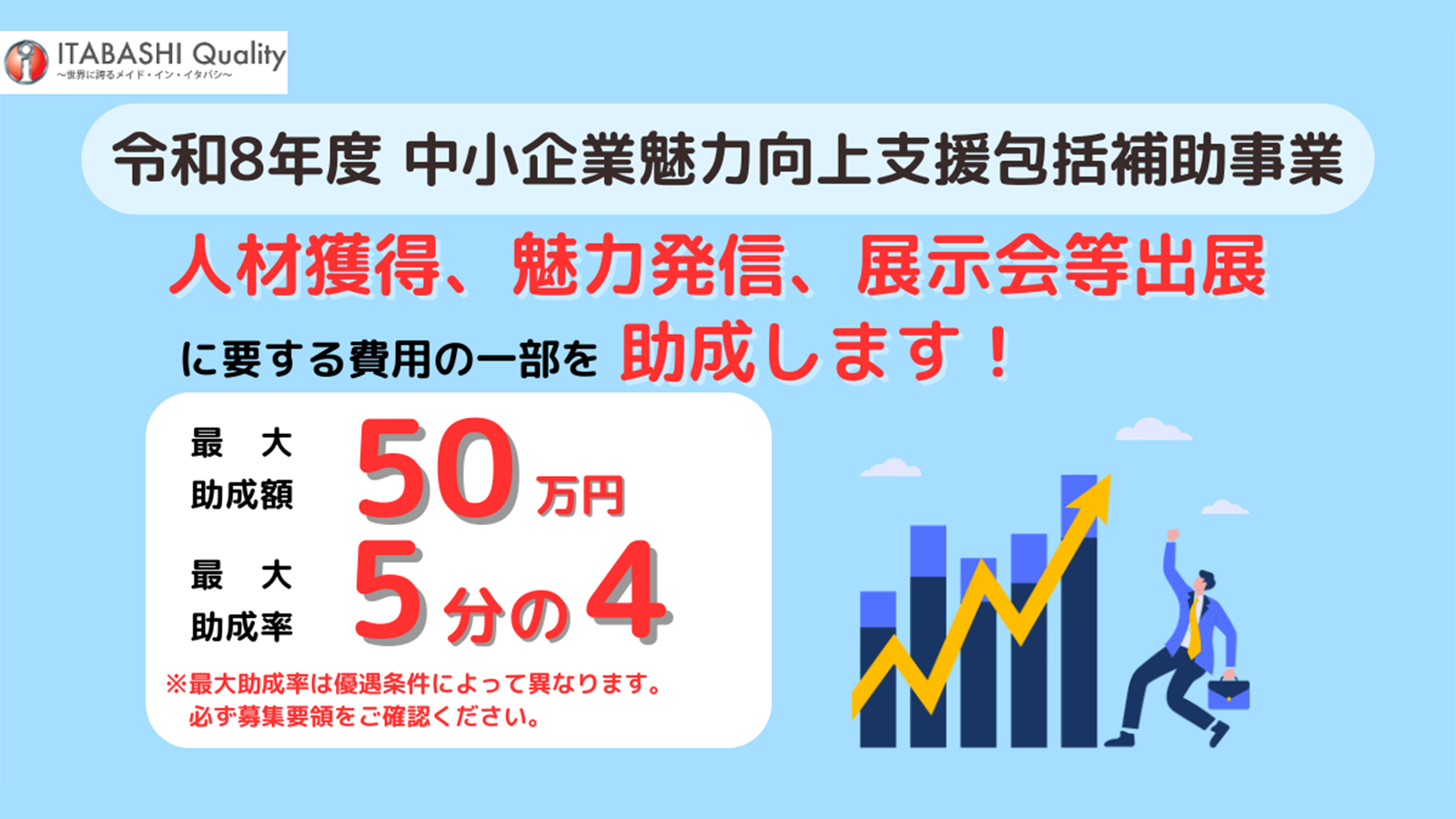 令和8年度 中小企業魅力向上支援包括補助事業助成金|(公財) 板橋区産業振興公社~ビジネスの安心と成長をサポート~