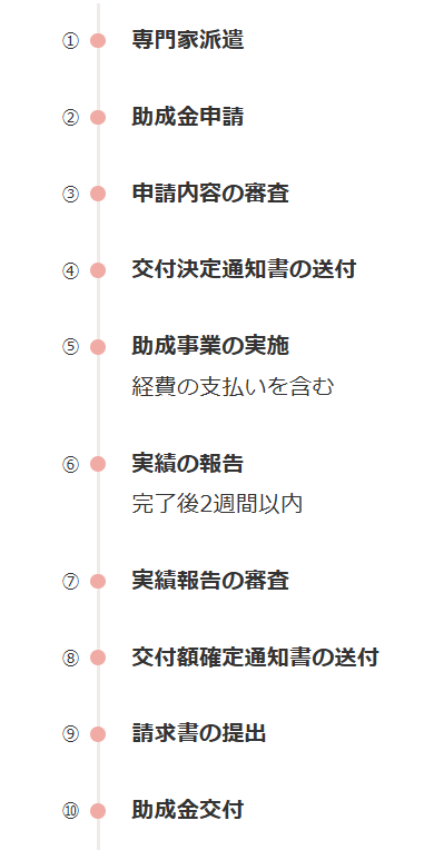 専門家派遣を受けた場合、助成率は2/3、受けない以外は助成率1/2となります。